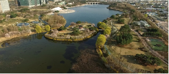 - 호수공원은 국내 최대 규모의 인공호수를 중심으로 자전거전용도로와 산책로, 잔디광장, 야외무대, 노래하는 분수대, 자연학습장, 전시관 등의 다양한 시설을 갖추고 있는 수도권 최고의 휴식 공간