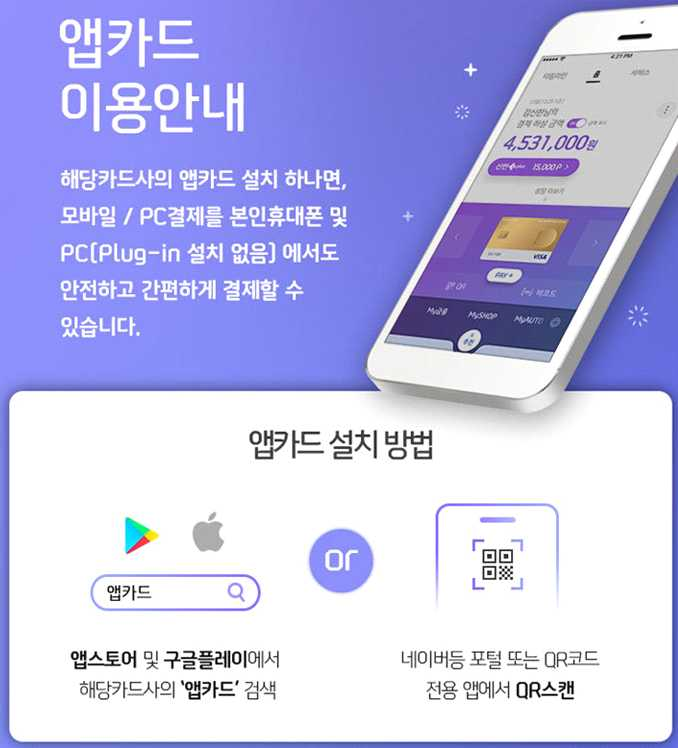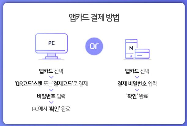 - 앱카드 기능을 통해, 온라인쇼핑몰 및 오프라인 점포에서 결제를 진행할 수 있음