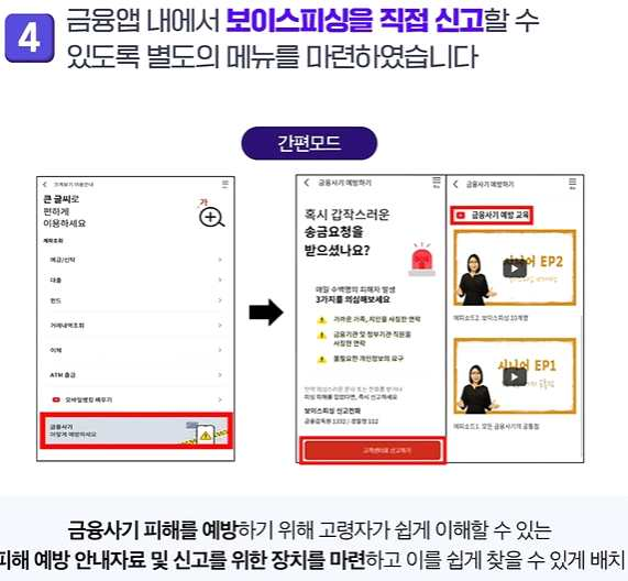 4) 금융 앱 내에서 보이스피싱을 직접 신고할 수 있도록 별도의 메뉴를 마련