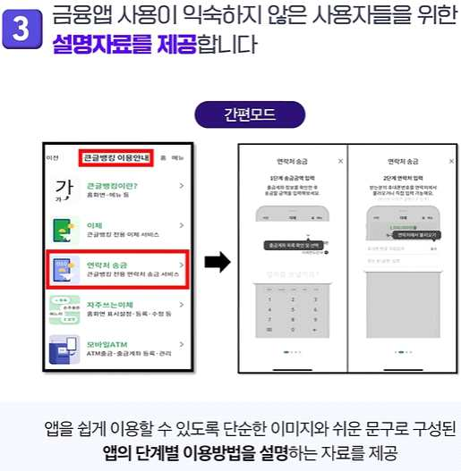 3) 금융 앱 사용이 익숙하지 않은 사용자들을 위한 설명자료를 제공