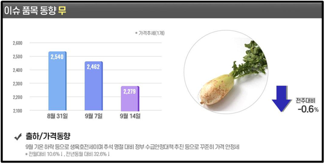 - 9월 7일부터 수급 안정 대책반 구성, 공급 상황. 가격 동향 점검