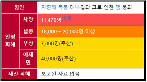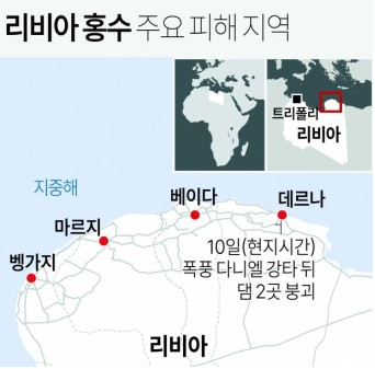 - 데르나 외에 옛 세누시야의 수도였던 베이다에서도 50여 명의 사망자와 다수의 실종자가 발생
