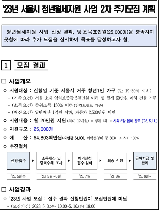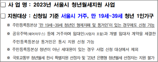 - 정식 명칭은 '2023년 서울시 청년 월세 지원 사업'