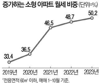- 2022년 1~10월 서울 소형 아파트 임대차 계약 2건 중 1건은 월세 계약으로 확인