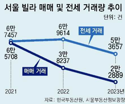 - 2022년 말부터 본격화한 전세 사기로 빌라 기피 현상이 커지면서, 빌라 매매량이 역대 최소로 급감
