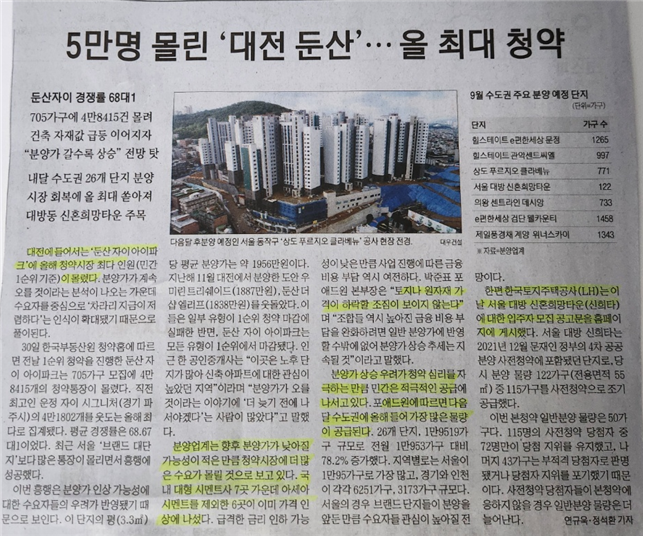 - 대전에 들어서는 '둔산 자이 아이파크'에 올해 청약시장 최다 인원 집결