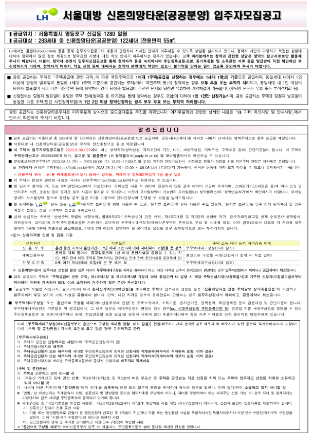 - LH, 서울 대방 신혼희망타운에 대한 입주자 모집 공고문을 홈페이지 게시