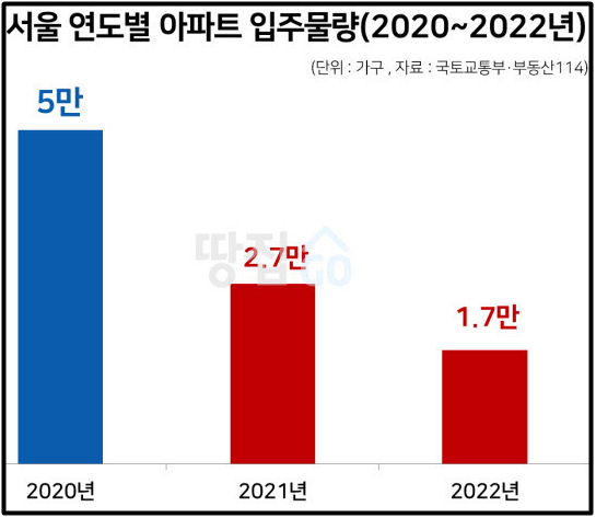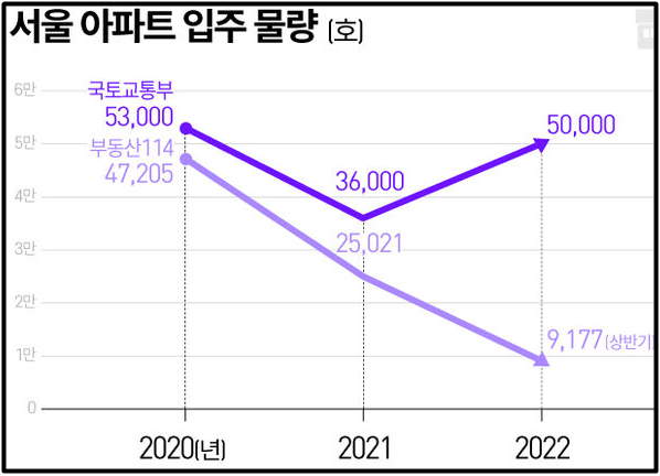 2) 부동산 R114에 따르면, 서울 입주 물량은 올해 2만 6,000여 가구에서 내년 1만 4,000여 가구로 감소
