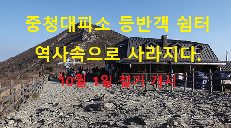 오는 10월 1일부터 중청대피소 철거 및 신축공사에 들어갈 예정이며, 중청대피소의 숙박 기능은 오는 9월 30일까지 운영한다고 밝혔습니다.