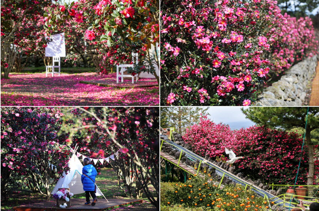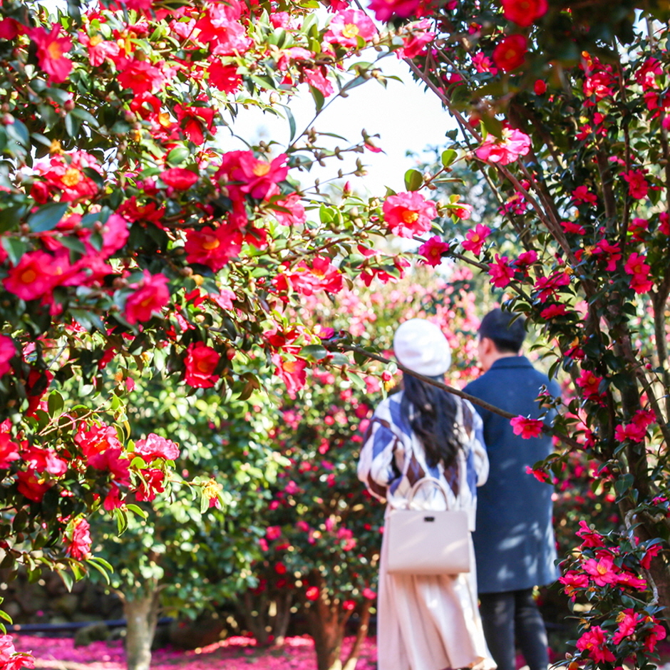 제주 겨울을 대표하는 동백꽃이 가득한 휴애리 동백축제는, 웨딩 스냅, 우정 스냅 등 인생 사진 찍기 좋은 장소로 인정받은 겨울 제주 여행의 필수 코스입니다.