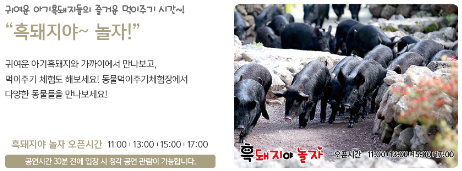 ◆ 흑돼지야 놀자 : 1일 4회(11시, 13시, 15시 16시 17시)