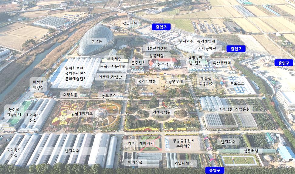 - 농업기술 홍보 : 실증 시험 온실, 화목류 시험포, 난지 과수원 등