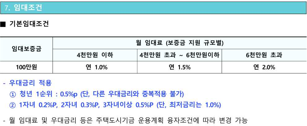 ◆ 기본 임대조건(표 참조)