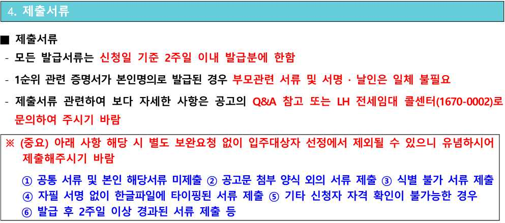 - 임대보증금 : 1순위는 100만 원, 2순위와 3순위는 200만 원을 LH에 내야 함