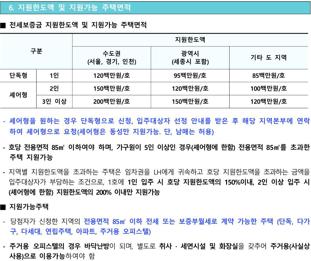 ▶ 혼자 거주하는 경우, 수도권에서는 1억 2천만 원까지 가능