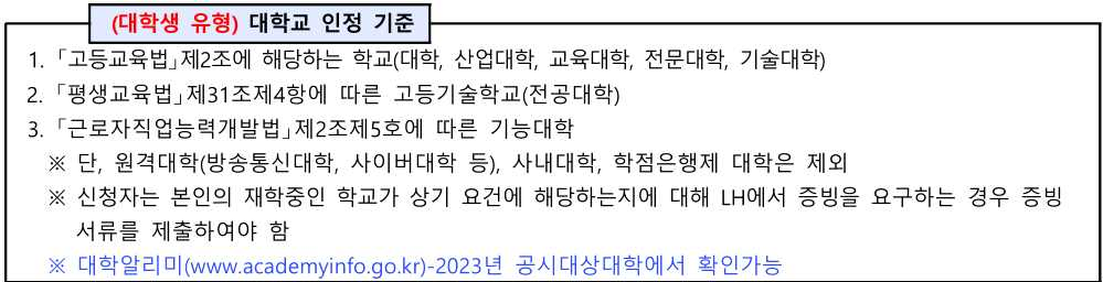 ▶ 대학생 : 신청 해당연도 대학에 재학 중이거나 입학 · 복학 예정인 만 19세 미만 또는 만 39세 초과 대학생
