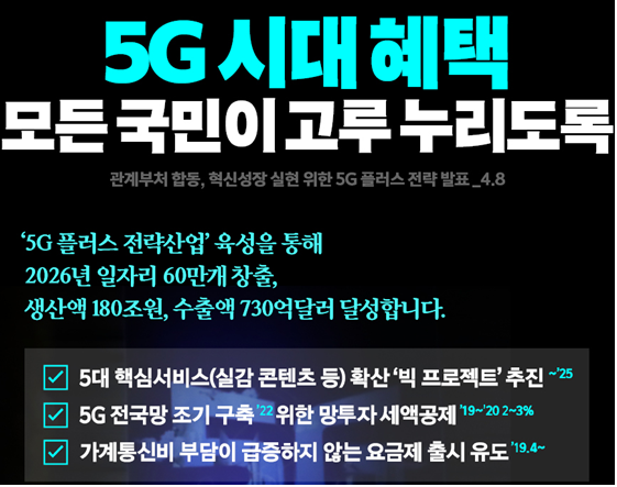 - 5G는 공공·사회 전반의 혁신적인 변화를 이끌 원동력으로, 국민의 삶의 질 향상, 국가 인프라 고도화 등에도 크게 기여할 것 기대