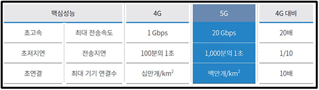 - 실시간(초저지연)으로 모든 것을 초 연결하는 4차 산업혁명의 핵심 인프라