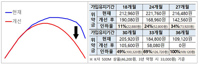 1) 이번 개선안에 따라 향후 위약금이 약정기간 절반인 18개월이 지난 시점부터 감소