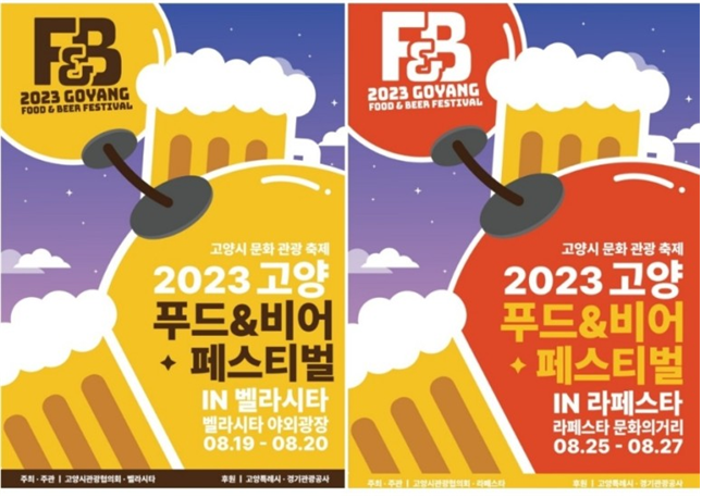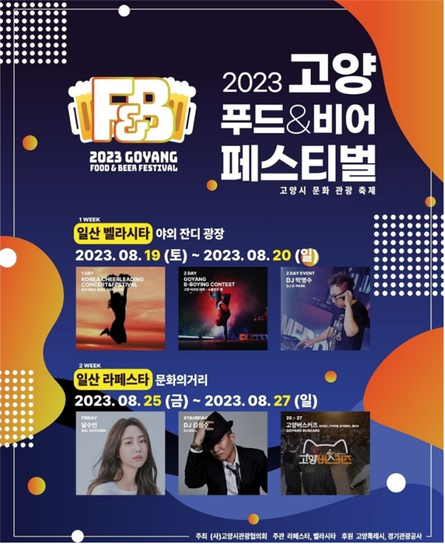 - 올해로 4회 차를 맞이하는 2023 푸드 앤 비어 페스티벌은, 시민과 지역 상권과 함께 즐기는 고양시 종합 축제로 고양시민들에게 위로와 힐링의 시간을 마련하는 주민 중심형, 지역 상권 연계형 행사입니다.