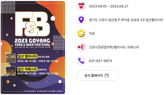 - 주관 : 고양시 관광협의회, 벨라시타, 라페스타 쇼핑몰 관리단 / 후원-고양시