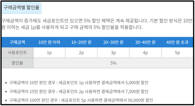 ▷ 구매 금액에 따른 포인트 사용 방법(홈택스 세금 포인트 조회란 바로 밑에 있음)