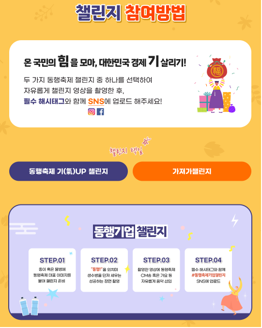 ▶ 동행 축제 기간을 주간 단위로 나눠, 각 주차 별로 온 국민이 참여하는, 경제주체 기(氣) 살리기 챌린지를 진행