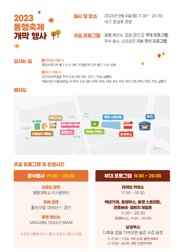 ▶ 황금 녘 동행 축제 개막행사는 9월 4일 대구 동성로에서 개최
