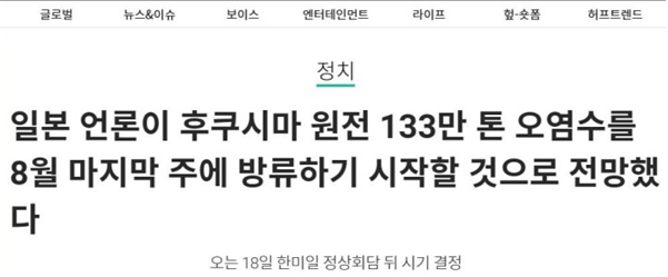 - 그러나 여러 가지 일본 국내 정황상 볼 때, 이달 말부터 방류를 시작한다는 말이 사실로 밝혀지는 것 같습니다.
