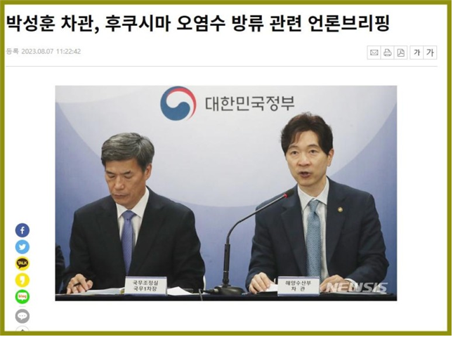 ▷ 정부서울청사에서 후쿠시마 오염수 방류 관련 언론브리핑 및 향후 계획 발표 (국무조정실 국무 1 차장 등)