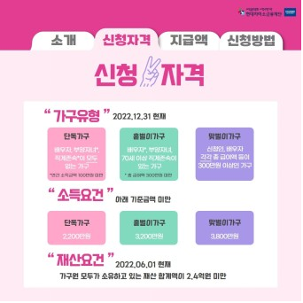 ▶ 가구에 따른 대상 및 총 급여액 요건