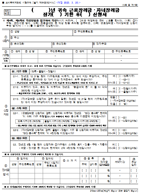 - 신청서 : 근로(자녀) 장려금 신청서