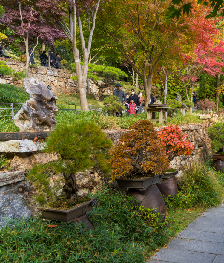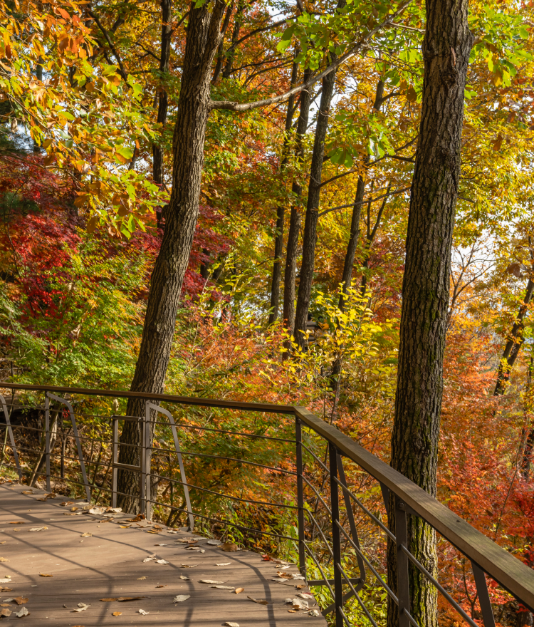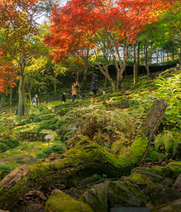 5.3km의 숲 속 산책길을 따라 느리게 거닐며 단풍으로 뒤덮인 붉은 장관을 음미할 수 있으며, 화담숲의 산책길은 전체가 완만한 경사로로 이루어져 있어, 관람이 용이하여 남녀노소 걷기에 부담이 없습니다.