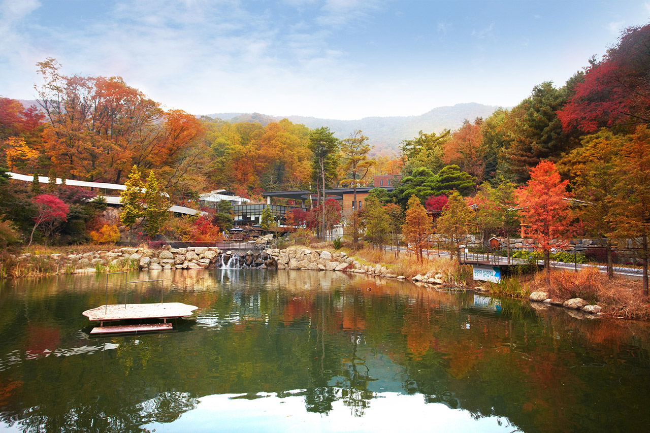 곤지암 화담숲의 가을은 온통 붉고 노란 빛깔로 물이 들어, 곳곳의 단풍나무들은 한 폭의 수채화를 연상케 하며 저마다의 가을 색을 뽐내고 있습니다. 산 정상부부터 가을 물로 옷을 갈아입는 단풍들은 산 중턱을 지나 10월 중순부터는 온 산을 물들입니다.